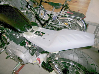Das neue Heckteil aus GfK gibt der Sportster schon etwas mehr vom künftigen Aussehen und ihrem neuen Charakter.