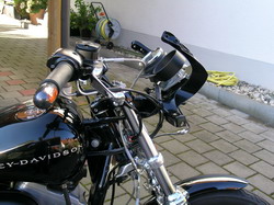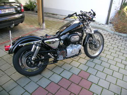 Jetzt fehlten nur noch ein paar kleinere Arbeiten und dann war die Sportster fertig für die Inbetriebnahme. Sie sprang sofort und ohne Probleme an. Einziger Schönheitsfehler noch: Die Vergasereinstellung passte nicht 100%-ig zur Auspuffanlage. Bei der Auspuffanlage handelt es sich inzwischen um eine originale HD-Anlage, nicht modifiziert. Die ursprüngliche Anlage war hier in Bayern auf den Strassen nicht fahrbar. In Hamburg, von wo das gute Stück stammt, hatte man da wohl keine Probleme. Die jetzt montierte Original-Anlage wurde sollte als Überbrückung dienen bis die finale Auspuffanlage angebaut wurde. Somit fehlte jetzt erst einmal die gewohnte Leistung, da die Vergasereinstellung. Eine Vergaseranpassung wurde aber nicht gemacht, da sowieso ein neuer Vergaser im folgenden Winter drauf kommen sollte.